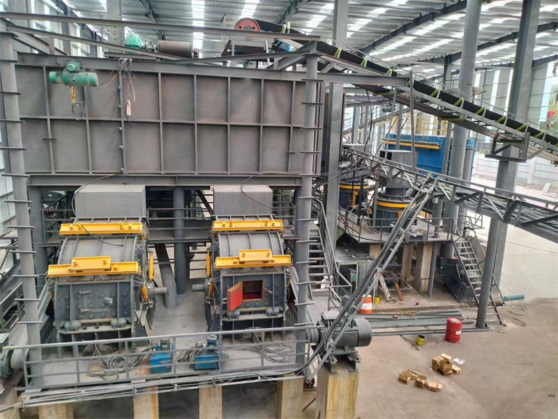 One PE1200 * 1500 jaw crusher is used for head injury; Two FKF series impact crushers, two FKL series impact sand making machines, and four F3YK series circular vibrating screens are used for the secondary crushing.