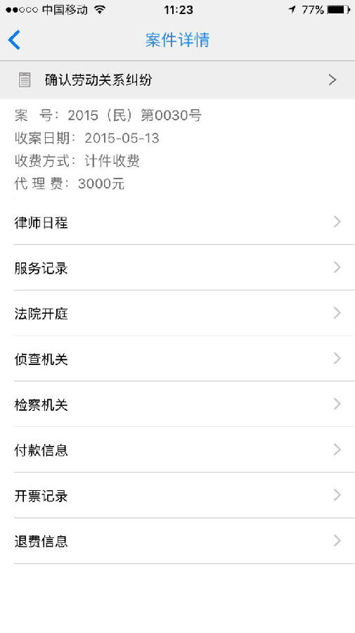 可以查看律師的日程安排、服務(wù)記錄、法院開庭、付款記錄、開票記錄、退費(fèi)記錄等詳細(xì)信息。