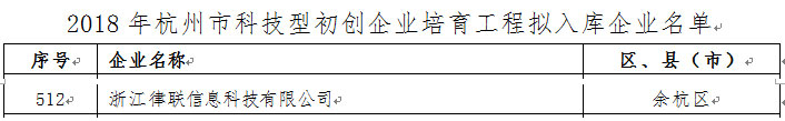 根據(jù)《杭州市科技型初創(chuàng)企業(yè)培育工程實(shí)施意見(2018-2020)》(杭科高〔2018〕4號(hào))的規(guī)定,經(jīng)各區(qū)、縣(市)科技局、杭州經(jīng)開區(qū)、大江東科技局初審和推薦,杭州市科學(xué)技術(shù)委員會(huì)進(jìn)行形式審查、專家評(píng)審和行政決策等程序,擬決定將浙江律聯(lián)信息科技有限公司等712家企業(yè)作為2018年杭州市科技型初創(chuàng)企業(yè)培育工程入庫企業(yè)。
