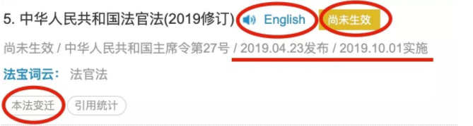 北大法寶,可以查看法律法規(guī)的效力狀態(tài)、變遷經(jīng)歷、中英文版本等。你也可以通過它的法寶聯(lián)想功能,搜索到與其相關(guān)的其它法律的延伸。