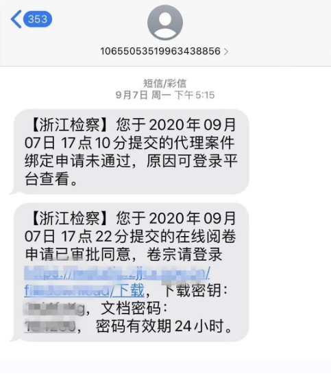 案件承辦檢察機關(guān)受理申請后,律師會收到浙江檢察APP平臺發(fā)來的服務(wù)已辦理的短信提醒,在互聯(lián)網(wǎng)電腦上打開短信預(yù)留的鏈接地址,經(jīng)掃碼、動態(tài)人臉核驗通過后,即可下載代理案件的電子卷宗。申請通過后,須在24小時內(nèi)進(jìn)行下載。